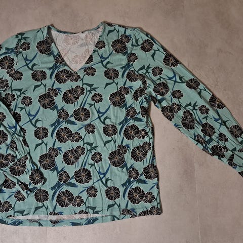Me&i harmaa trikoinen kietaisupaita, koko M. Paristi käytetty ja pesty, ei häviä uudelle. Kauniit laskokset olkapäillä.