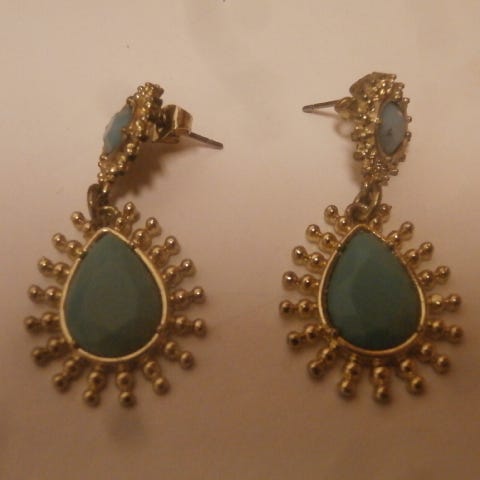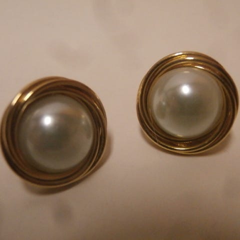 Kauniit riipuskorvakorut. Vaalea helmiriipus, kullanvärinen korumetalli, strassi. Piikillä. Ehjät. Postitus tai nouto.