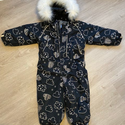 Käytetty talvihaalari. Pesty tuoksuttomalla pesuaineella, ilman huuhteluainetta. Huomaa nukkaantunut kaulus, nukkaa tarrakiinnikkeissä sekä elämää nähneet kuminauhat punteissa (kaikki nämä kuvattu).