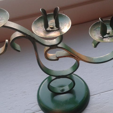 Vintage metallinen kynttilänjalka kolmelle kynttilälle