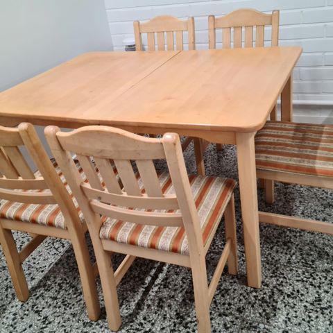 Puusepän clt-levystä tekemä 6hengen ruokailuryhmä. Jalat terästä. Lasikansi kuuluu mukaan. Painava.