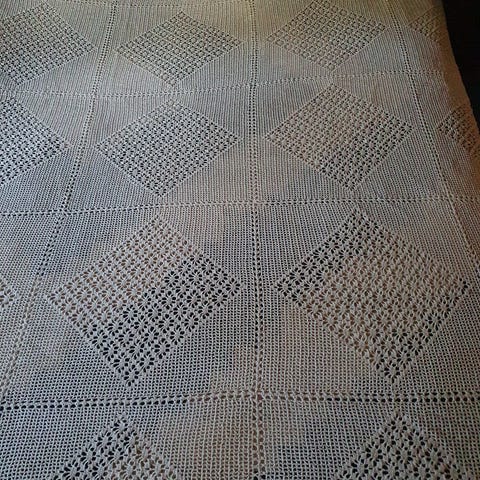 Itse virkattu päiväpeitto kalastajalangasta erittäin hyväkuntoinen.