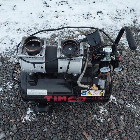 Lähes käyttämätön Probuilder kompressori, 2 letkua, rengaspainemittari ja mutterinväännin.