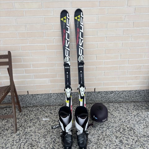 Head sukset, siteet, monot ja Scottin kypärä pienelle henkilölle. Sukset 86cm. Monot koko 27-29. Kypärä 56/57. Mukaan myös pohjalliset.