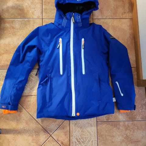 Toppatakki vaikkapa lasketteluun. Hihassa tasku hissikortille. Kokomerkintä 140. Pientä kulumaa heijastimissa. Takki ehjä ja siistissä kunnossa.