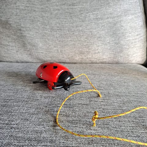 BRIO Lasten lelu, joka sisältää vetolelun muotoiltuna leppäkertuksi, vihreän helistimen ja pienen rummun. Valmistettu puusta. Vauvalelut, vauvalelu