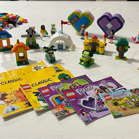 Kaksi legosettiä + ohjevihkot + lego dots -ranneke, kaikki yhteishintaan