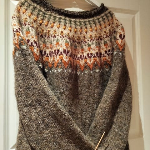 Käsin kudottu lettlopi langasta.