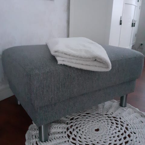 Vanha kunnostettu rahi. Verhoiltu Annalan kankaalla. Kauniit koristekaiverrukset. Puurunko. Pystyjouset. Korkeus 39cm,halkaisija 62cm