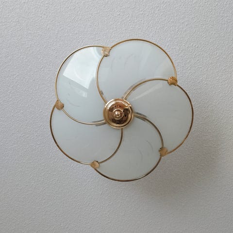 Hyväkuntoinen ja ehjä metallinen kattovalaisin, jäi muutosta tarpeettomaksi. Kuvassa hieman pölyinen.