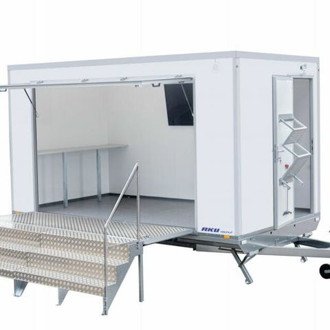 Siirrettävä työmaakoppi, hyllyt molemmin puolin