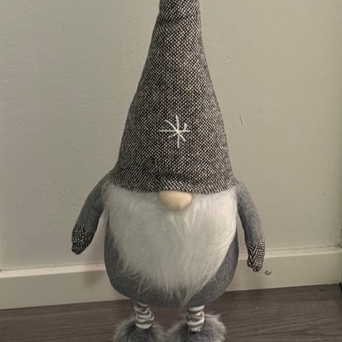 Sisätiloissa ollut joulutonttu. Käy myös ulos, mutta tämä yksilö ollut vain sisätiloissa. Korkeus n. 40-50cm. Hyvä lahjaidea.