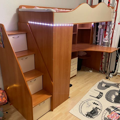 Myydään hyväkuntoinen ja vähäiselle käytölle jäänyt lasten talosänky lipastolla ja hyllyköllä.