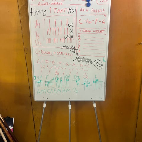 Pääpuoli: fläppitaulu + whiteboard