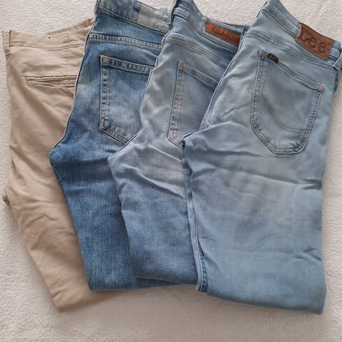 Kuvan farkut. Leveä malliset. Oikeassa lahkeessa pieni jälki, ei ole rikki kuitenkaan, siitä kuva.