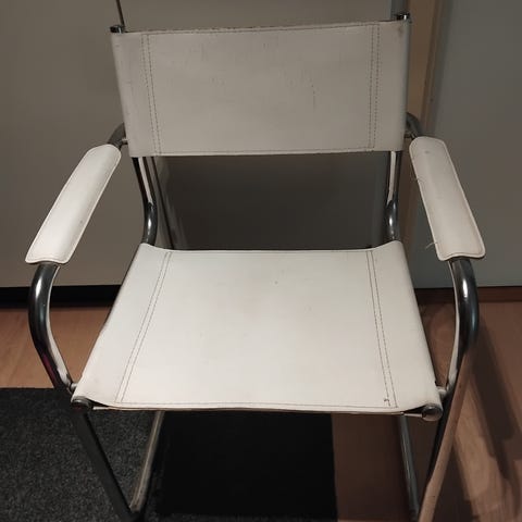 Myydään valkoinen metallinen tuoli ruskealla puupäällisellä. Hyvä kunto, puun pinnassa pieniä jälkiä näkyy kuvassa. Haku Turusta