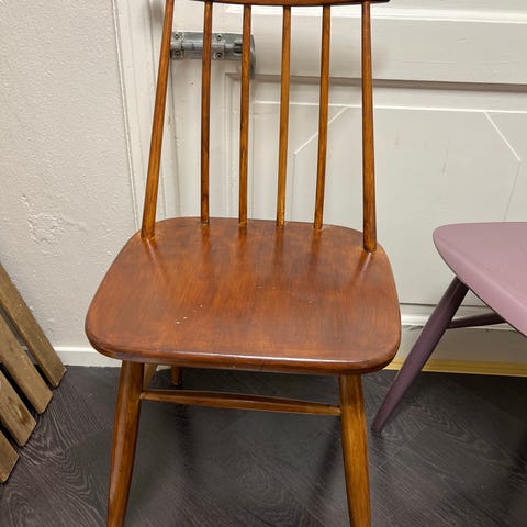 Maalattu pinnatuoli. Kunto hyvä. Pinnassa yksi maalin lohkeama (ks kuva)