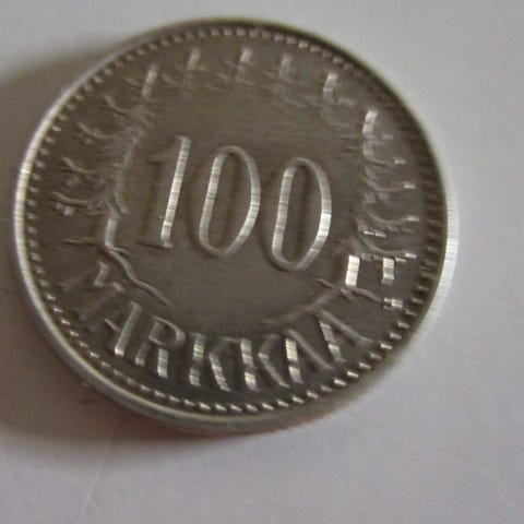 Kuvien mukainen 100 mk hopeinen kolikko, v. 1958,