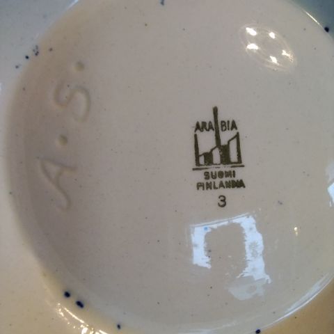 Wanhaa piippuleimaista Arabiaa, soppakulho puna-kultaraitakoriste