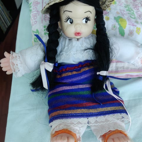 hyvin tehty vauva nukke vartalo trikoota, tiiviisti täytetty. Puhdas, hajuton, ei eläin kontakteja. Teki henkilö joka osasi ja teki vielä suloisen…mielestäni. Päällä vähän muokattu haalari. pituus n 37 cm Hinta 15 ja toimitus