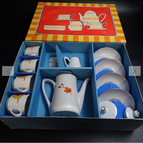 Kuvanmukaiset astiat kunto moitteeton. Lähetys onnistuu.