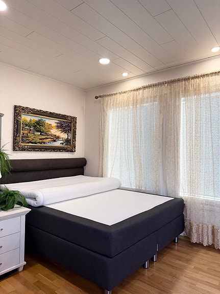 Sänky on erittäin hyvässä kunnossa, siisti ja ehjä – juuri pesty ja imuroitu, heti valmis käyttöön.