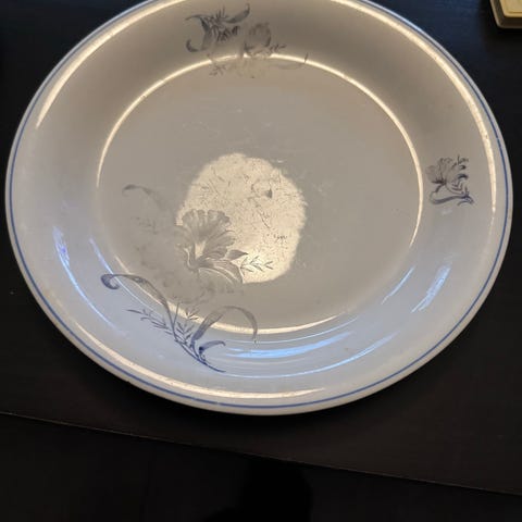 Myynnissä kolme Arabian Tiuku pullalautasta. Kamera haalentaa väriä, luonnossa väri tummempi, ehkä vähän lilaan vivahtava vaaleanpunainen. Ehjiä ja lasite muuten kunnossa, mutta pinnassa on naarmuja, en onnistunut saamaan kuviin. Kuviot hyväkuntoiset. Halkaisija 17 cm.