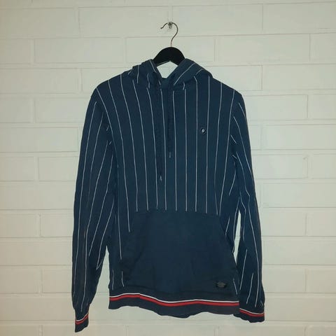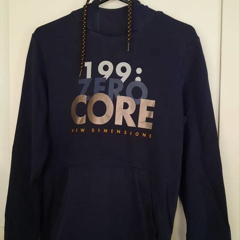 Jack&Jones tummansininen huppari, koko L. Väri hieman haalistunut pesussa ja pesunukkaa hieman.