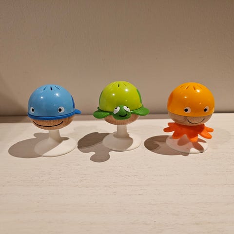 Kun vedät etanaa, laatikko pyörii ja palikat laatikon sisällä pyörivät mukana. Palikkalaatikon voi nostaa etanan päältä pois ja näin leikkiä niillä erikseenkin.