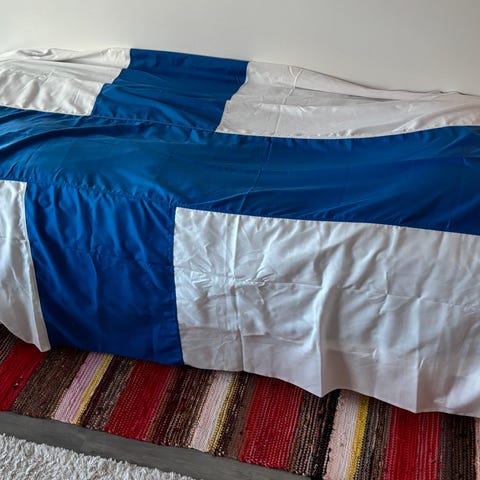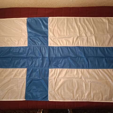 Suomen lippu pikaliittimineen. Uusi, käyttämätön, puhdas ja sileä! 164cmx100cm. Salkoon (6m-8m), venelipuksi, laivaan tms.
