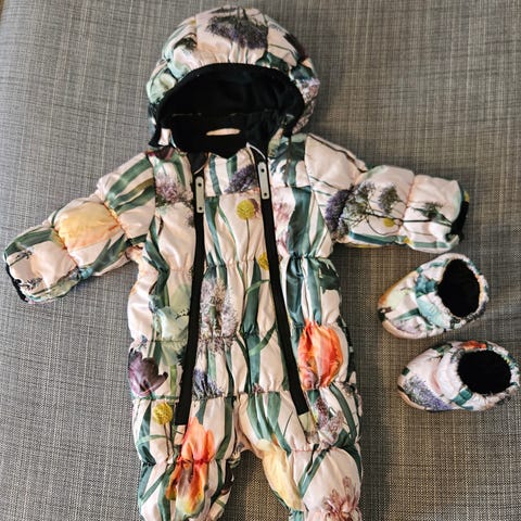 Uudenveroinen Molon toppahaalari koko 56. Hihansuut voi kääntää tumpuiksi ja töppöset irroittaa lahkeista. Koko 56. Hinta 50€. Nouto.