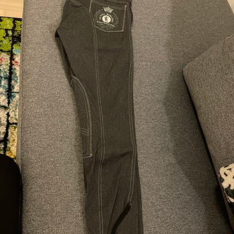 Myydään hyväkuntoiset siistit farkkukankaiset HV Polo ratsastushousut koko 40 .