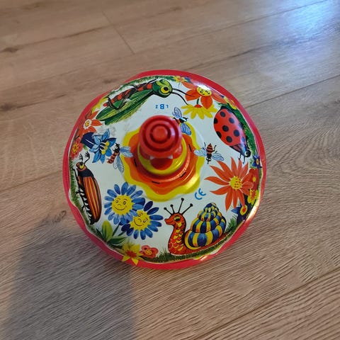 Vanha eläinhyrrä, eläimet pyörii kun painetaan päältä.
