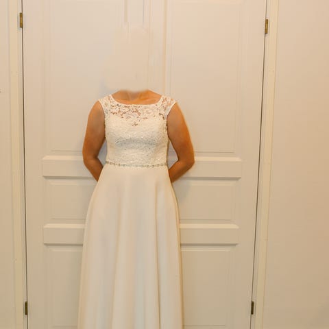 Justin alexander adore mekko, ostettu Zazabellasta. Muokattu 166cm+korkokengät mittaiselle. Koko 38. Ihanaa joustavaa materiaalia, joten todella mukava päällä! Super kauniit yksityiskohdat. Nude/beige pohja. Mukaan saa alushameen, hunnun, laahusneulan sekä pukupussin. Käytön jälkeen pesetetty pesulassa. Ovh. 1249€+muokkaukset.