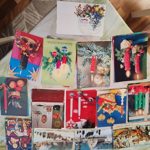 56 kpl kulkeneita joulukortteja 1970-luvulta.