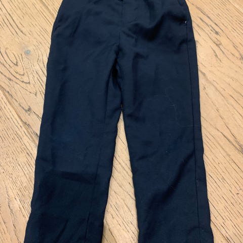 Todella tummansiniset juhlahousut, koko 100 cm. Lahkeen pituus haarasta 41 cm.