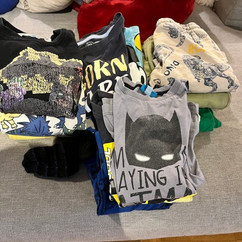 Pojalle siistejä ja ehjiä vaatteita. T-paitoja, verkkatakki, pitkät muumi alushousut, college paitoja.