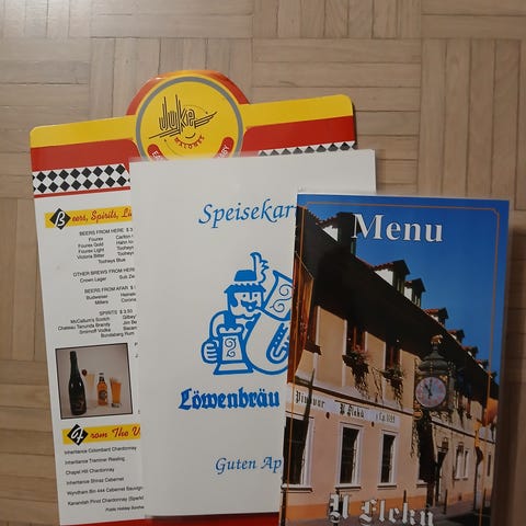 Vanhat hyväkuntoiset Hämeenlinnan Aulangon ja Kaupungin hotellin ruokalistat.