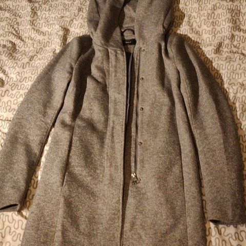 ONLY Pitkä takki naisille, koko S. Takin hupussa irrotettava tekoturkisreunus. Vetoketju ja napit edessä. Materiaali on pehmeä, tikattu kauniisti ja lämmin, sopii myös kylmempään säähän ja tuuleen.