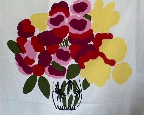 Sinivalkoinen iso Unikko kangas. 100% puuvillasatiinia. 144 (ilman valkoisia reunoja)×150cm. ) 25€. Toisessa päässä 23cm korkeudella sinisessä osassa 1,5 mm tummempi raita. Katso toinen kuva. Nouto Kesälahdelta. Postitus 6€. Toridiili käy myös.