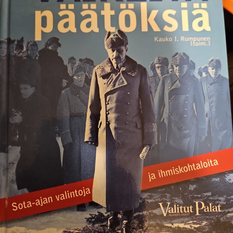 Siistikuntoinen kirja. Sisältä oikein hyväkuntoinen - melkein kuin uusi - joskin hieman kellastumaa taitaa olla ja etulehdelle on liimattu saatepaperi (Kouvolan Sotaveteraanit ry on aikoinaan lahjoittanut teoksen jäsenelleen). Kansipaperissa normaalia käytönjälkeä.