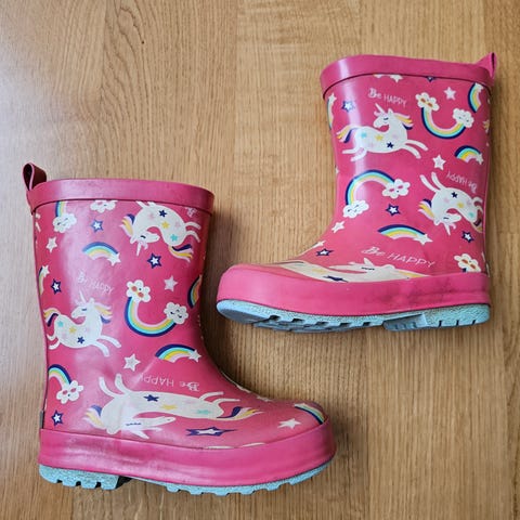Huom! Kengän sisämitta n. 16,5 cm. Olen aika varma, että ovat kokoa 26, mutta en 100% varma. Saappaisiin on kirjoitettu nimiä tussilla. Saappaat ovat ehjät.