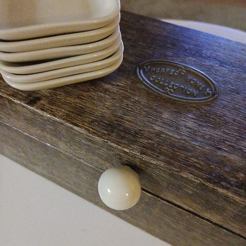 Laatikon pohjalla teepusseista jäänyt pientä värjäymää jonka saa helposti esim. maalaten piiloon jos haluaa.