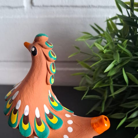 Harvinainen käsintehty savimaljakko ,sininen, ruskea koristeilla
