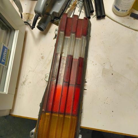 Mercedes-Benz takavalo vasen puoli. Valaisin on punainen ja kirkas, valmistettu muovista. Sopii auton takaosaan ja sisältää liittimen sähköliitäntää varten. Pieni halkeama tossa taka kulmassa