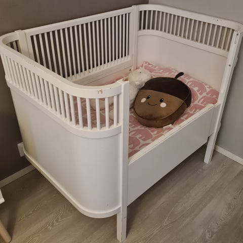 Sänkyyn kuuluu patja, jossa sininen patjansuojus sekä toinen patja johon kuuluu valkoinen patjansuojus. Sänkyyn myös asennettu nousutuki, sen saa mukaan. Sinisen patjan pituus 200cm ja leveys 84cm.