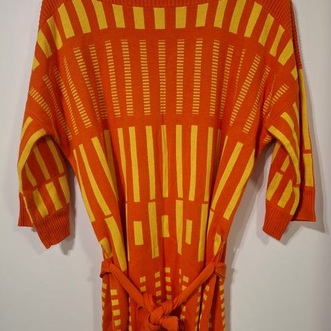 Hyväkuntoinen marimekon puuvillaneule seuraavalle. Kainalosta kainaloon n.68cm olkapäästä alas n.70cm.