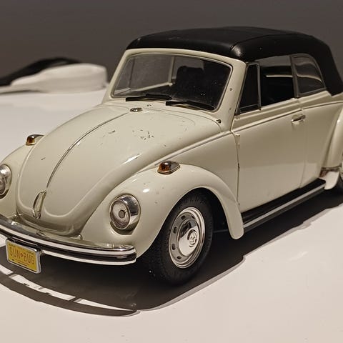 Vanha Made In Japan peltiauto Volkkari. Takapuskuri jäänyt matkalle ja ajan patinaa korissa. Koko n. 1:43.