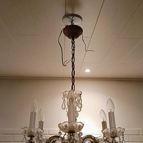 Kuvan iso Marie Teresia Kattokruunu, En pääse kokeilemaan toimivuutta, ollut viimeksi käytössä vanhemmallani n. 10 v sitten. Hinta 40 e. Haku Turusta.