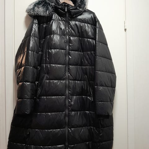 Myydään vero modan curve -malliston lämmin musta toppatakki. Vetoketjukiinnitys, taskut ja huppu. Takki on käyttäjän pituudesta riippuen noin polvipituinen.